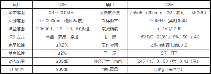 - 缺陷回波參數(距離、垂直、水平、波幅、dB或當量孔徑值)實時顯示;多次波探測缺陷的實際深度可直接顯示。