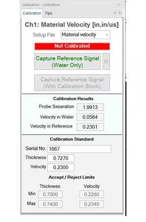 在調整界面輸入參考鑄件的序列號、厚度以及聲速等信息
