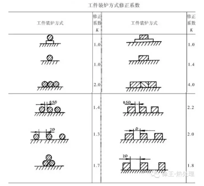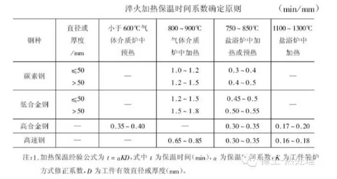 傳統(tǒng)的碳素鋼淬火加熱時(shí)間的計(jì)算公式:T=K?αD